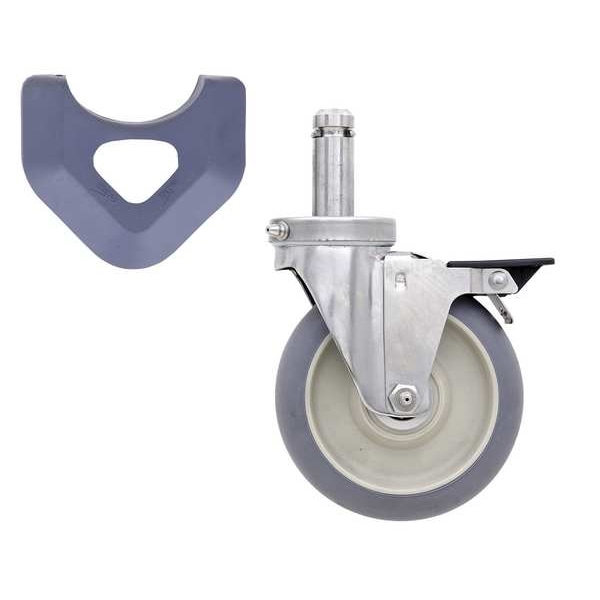 High Modulus Donut Cart-Washable Swivel, Caster Wheel/Configuration Swivel with Brake, Caster Wheel Type Solid Rubber, Caster Wheel/Tread Material Rubber, Caster Frame Material Stainless Steel, Caster Mounting Height 6 1/16 in, Caster Mounting Type Stem, Caster Stem Length 2 3/16 in, Caster Wheel Diameter 5 in, Gray, Silver, Overall Height 8 1/4 in, Overall Width 2 1/2 in, Compatible Manufacturer Model Number Industrial Plastic Shelving Racks