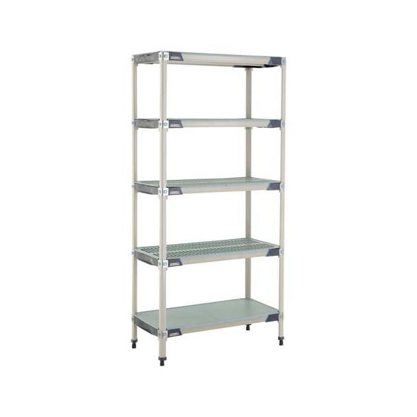 Industrial Shelving Starter, Assembled Unassembled, Adjustability Adjustable, Color Blue/Taupe, Frame Material 304 Stainless Steel, Overall Depth 36 in, Overall Height 74 in, Overall Width 18 in, Shelf Adjustment Increments 1 in, Shelf Style Ventilated; Solid, Shelving Material 304 Stainless Steel, Polymer, Industrial Shelving Strength Rating, Whole Unit Load Capacity 2,000 lb, Number of Shelves 5, Mounting Type Wedge; Post Clamp, Load Capacity per Shelf 400 lb