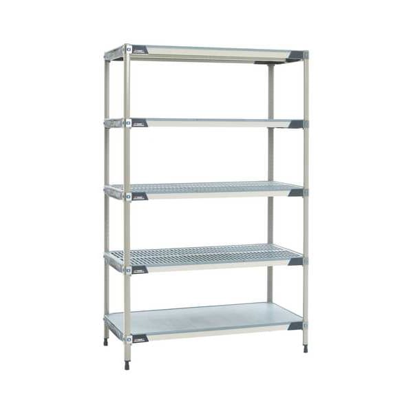 Industrial Shelving Starter, Assembled Unassembled, Adjustability Adjustable, Color Blue/Taupe, Frame Material 304 Stainless Steel, Overall Depth 24 in, Overall Height 74 in, Overall Width 24 in, Shelf Adjustment Increments 1 in, Shelf Style Ventilated; Solid, Shelving Material 304 Stainless Steel, Polymer, Industrial Shelving Strength Rating, Whole Unit Load Capacity 2,000 lb, Number of Shelves 5, Mounting Type Wedge; Post Clamp, Load Capacity per Shelf 400 lb