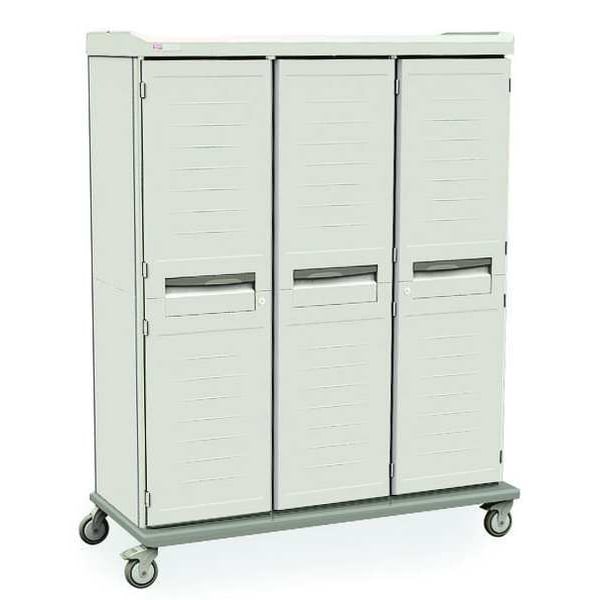 Supply Cabinet, Frame Assembled Assembled, Number of Shelves 13, Antimicrobial Yes, Cabinet Color Taupe, Cabinet Material Polymer, Cabinet Storage Components Shelves, Drawer Height Not Applicable, Drawer Width Not Applicable, Mobility Mobile, Number of Doors 3, Overall Depth 27 7/8 in, Overall Height 78 1/4 in, Overall Width 65 3/4 in, Shelf Width 16 1/2 in, 19 3/4 in, 36 3/8 in, 39 1/2 in, Mounting Location Freestanding, Door Handle Type Recessed Pull, Door Opening 225 Degrees , Door Type Solid