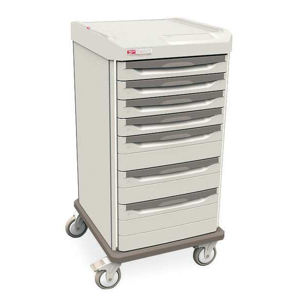 Bedside & Nurse Server Cart, Assembled/Unassembled Assembled, Material Polymer, Caster Wheel Dia. 5 in, Caster Wheel/Tread Material Polyurethane, Caster/Wheel Configuration (4) Swivel, Caster Brake Type Total Lock Brake, Cabinet Color Taupe, Drawer Color White, Number of Drawers 7, Number of Shelves 1