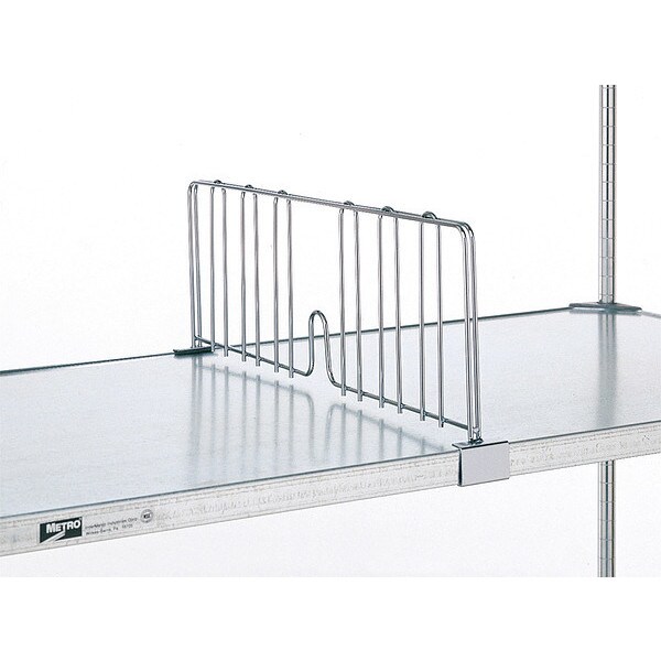 Shelf Divider, Color Silver, Stainless Steel Finish, Material Stainless Steel, For Shelf Depth 24 in, For Shelf Width 24 in, Includes (1) Shelf Divider, Overall Depth 2 1/8 in, Overall Height 8 in, Overall Width 24 in, NSF Standards