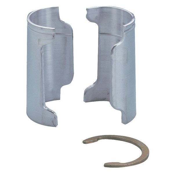 Shelf Split Sleeve, Overall Depth 1 1/4 in, Overall Height 1 3/4 in, Overall Width 1 1/4 in, Silver, Zinc-Plated, Aluminum, Split Sleeve Type, Super Erecta Shelving, (4) Zinc Rings, Package Quantity 4