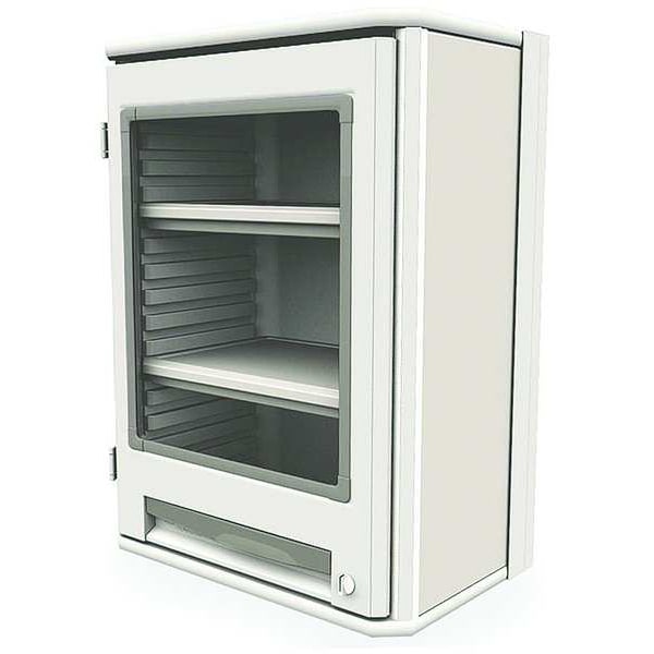 Supply Cabinet, Frame Assembled Assembled, Number of Shelves 2, Antimicrobial Yes, Cabinet Color Taupe, Cabinet Material Polymer, Cabinet Storage Components Shelves, Drawer Height Not Applicable, Drawer Width Not Applicable, Mobility Stationary, Number of Doors 1, Overall Depth 13 3/4 in, Overall Height 29 1/2 in, Overall Width 21 1/2 in, Shelf Width 18 in, Mounting Location Wall, Door Handle Type Recessed Pull, Door Opening 225 Degrees , Door Type Clearview, Lock Type Keyed