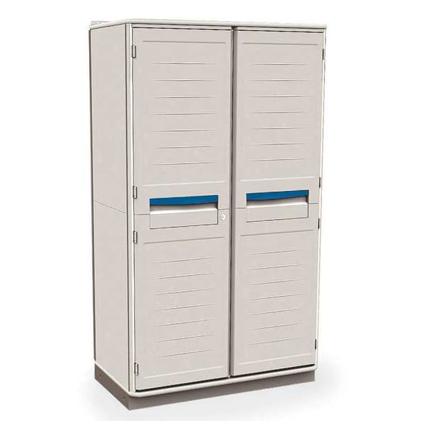 Supply Cabinet, Frame Assembled Assembled, Number of Shelves 5, Antimicrobial Yes, Cabinet Color Light Taupe, Cabinet Material Polymer, Cabinet Storage Components Shelves, Drawer Height Not Applicable, Drawer Width Not Applicable, Mobility Stationary, Number of Doors 2, Overall Depth 23 3/8 in, Overall Height 72 1/2 in, Overall Width 41 1/4 in, Shelf Width 36 3/8 in, 39 1/2 in, Mounting Location Freestanding, Door Opening 225 Degrees , Door Type Solid, Lock Type Keyed, Number of Drawers 0