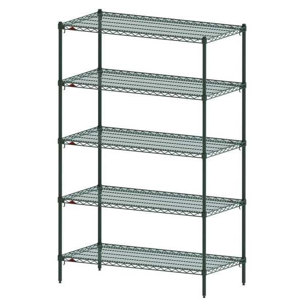 Wire Shelving, Shelf, Metal, Adjustable Shelving, Adjustability Adjustable, Green Color, Epoxy Coated, Includes (4) Posts, Load Capacity per Shelf 400 lb, Material Stainless Steel, Overall Depth 24 in, Overall Height 74 in, Overall Width 48 in, Wet Recommended Environments, Shelf Adjustment Increments 1 in, Standards HACCP, NSF, 2,000 lb, Shelf Configuration Starter, Number of Shelves 5