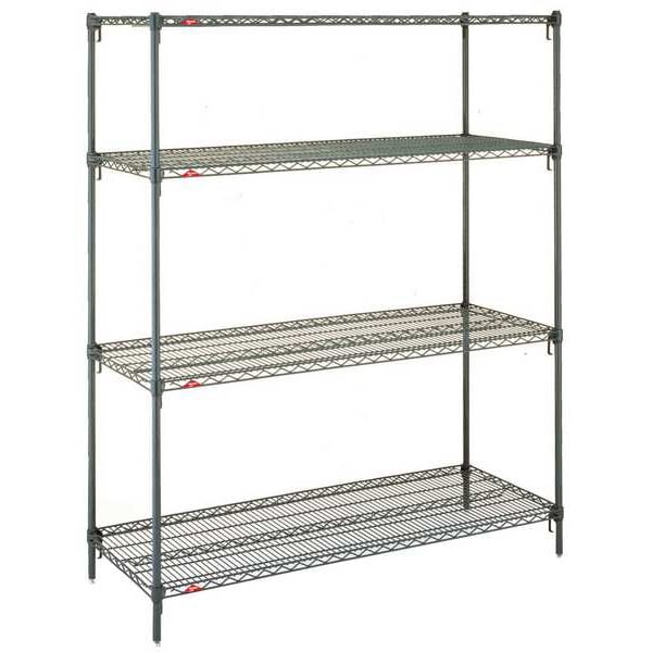 Wire Shelving, Shelf, Metal, Adjustable Shelving, Adjustability Adjustable, Green Color, Epoxy Coated, Includes (4) Posts, Load Capacity per Shelf 500 lb, Material Stainless Steel, Overall Depth 18 in, Overall Height 63 in, Overall Width 72 in, Wet Recommended Environments, Shelf Adjustment Increments 1 in, Standards HACCP, NSF, 2,000 lb, Shelf Configuration Starter, Number of Shelves 4
