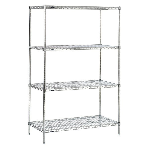 Wire Shelving Unit, Adjustability Adjustable, Silver Color, Chrome, Includes (4) Posts, Plastic Split Sleeves, Includes Mounting Hardware Yes, Load Capacity per Shelf 500 lb, Material Steel, Overall Depth 24 in, Overall Height 74 in, Overall Width 48 in, Dry Recommended Environments, Shelf Adjustment Increments 1 in, Standards NSF, 2,000 lb, Shelf Configuration Starter, Shelf Adjustment Type Split Sleeve, Number of Shelves 4
