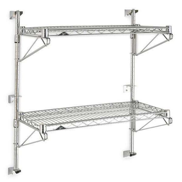 Wire Wall Shelf, 1 in Shelf Adjustment Increments, 18 ga, Ventilated Shelf Style, 125 lb Load Capacity per Shelf, Number of Shelves 2, Usable Depth 18 1/8 in, Usable Width 35 7/8 in, Mounting Mechanism Direct, Wall Mount Mounting Type, Overall Depth 18 in, Overall Height 34 in, Overall Width 36 in, 250 lb Load Capacity, (2) Shelves, Steel, Adjustable, Silver, Chrome, NSF