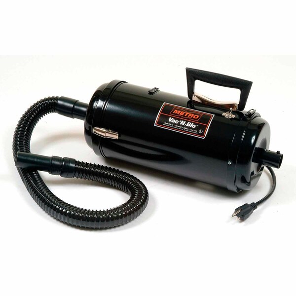 - This super-suction vacuum cleans machine areas, vehicles, workbenches, offices and computers. The 4.0 peak horsepower motor makes it the most powerful all-steel vac available. Along with powerful suction, this vacuum includes a 200 mph blower to dry parts, tools or dies and clear leaves, litter and dust. The all-steel body, lightweigh but durable, includes a shoulder strap and can be used outdoors. Chip resistant baked enamel finish. Cloth collection bag included, paper bags also available. 1'L power cord. 115 volt. Vac 'N, Blo includes these accessories:3'L flexible hose Two 20L extension wands Upholstery nozzle Crevice tool 2 blower nozzles for inflating and power or fine airflow Optional Carrying Case available.