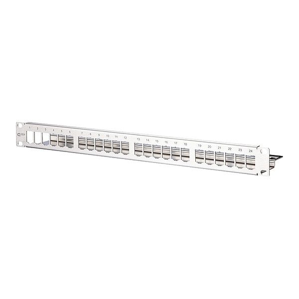 Patch Panel, Product Type Module Frame, Body Material Stainless Steel, Overall Height 1.75 in, Overall Width 19 in, Overall Depth 3.937 in, Number of Ports 24