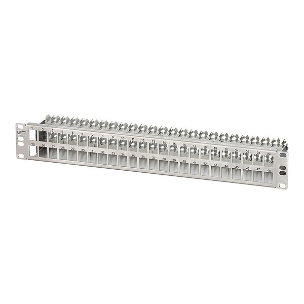 Patch Panel, Product Type Module Frame, Body Material Stainless Steel, Overall Height 2.591 in, Overall Width 19 in, Overall Depth 3.937 in, Number of Ports 48, Connection Type Coax Module F, Coax Module IEC, E-DAT Module Cat6A 8(8) K, E-DAT Module Coupler 8(8) 180 Degrees Class Ea, OpDAT Module LC-Duplex APC OS2, OpDAT Module LC-Duplex OM2, OpDAT Module LC-Duplex OM3, OpDAT Module LC-Duplex OM4, OpDAT Module LC-Duplex OS2, UTP Module 8(8) Cat6, UTP Module 8(8) Cat6A, UTP Module Cat6A