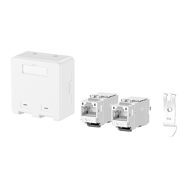 RJ45 Keystone, Product Type Extension Box, Body Material GD-Zn (Zinc Die-Cast), Overall Height 0.787 in, Overall Width 0.579 in, Overall Depth 1.417 in, Number of Ports 2, Connection Type IDC Connection x RJ45, Shielded Yes, Includes Connector Equipped, Color White, Mounting Angle 180 Degrees , Mounting Type Rail