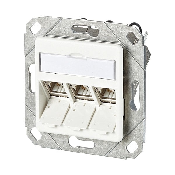 Wall Outlet, Product Type Wall Outlet, Body Material GD-Zn (Zinc Die-Cast), Overall Height 2.752 in, Overall Width 2.752 in, Overall Depth 1.613 in, Number of Ports 3, Connection Type IDC Connection x RJ45, Shielded Yes, Color White, Mounting Angle 180 Degrees , Mounting Type UPK