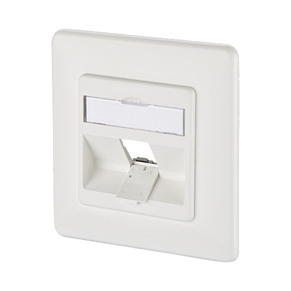 Wall Outlet, Product Type Wall Outlet, Body Material GD-Zn (Zinc Die-Cast), Overall Height 3.169 in, Overall Width 3.169 in, Overall Depth 0.919 in, Number of Ports 1, Connection Type Individual Keystone Modules, Includes Connector Unequipped, Color White, Mounting Angle 45 Degrees , Mounting Type UP