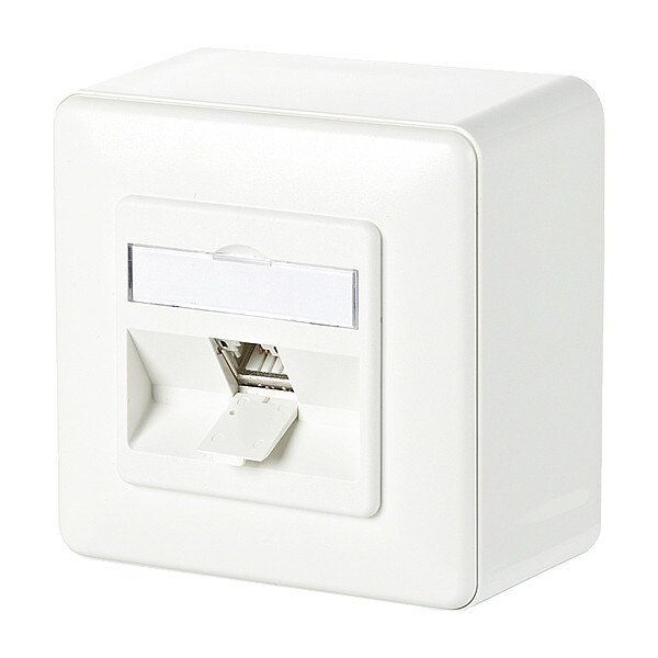 Wall Outlet, Product Type Wall Outlet, Body Material GD-Zn (Zinc Die-Cast), Overall Height 3.368 in, Overall Width 3.368 in, Overall Depth 2.008 in, Number of Ports 1, Connection Type IDC Connection x RJ45, Shielded Yes, Color White, Mounting Angle 180 Degrees , Mounting Type AP