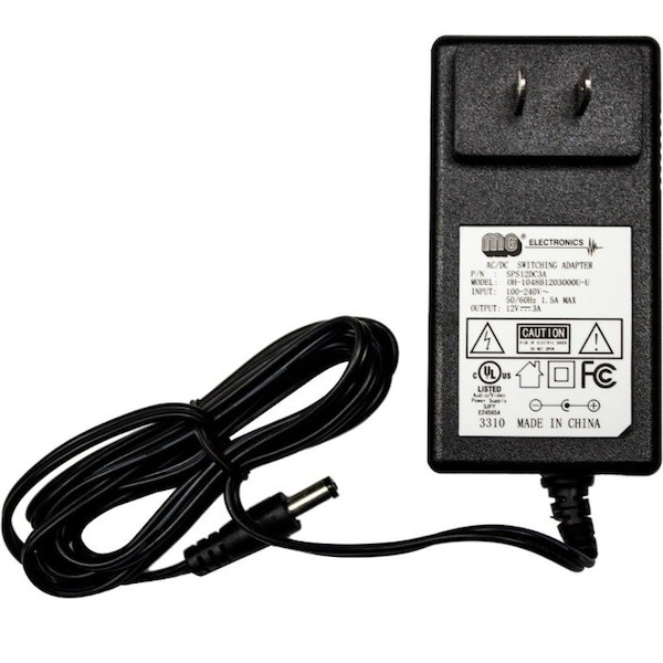 12VDC 3A Plug in power supply, w/6' wire, 2.1mm barrel plug