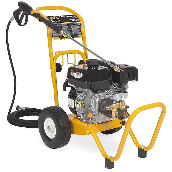 Gas-Powered Pressure Washer, Medium Duty (2000 to 2799 psi), 2,700 psi, Gas, Pressure Washer Water Type Cold, Pressure Washer Style Cart, Pressure Washer Flow Rate 2.3 gpm, Engine Brand Mi-T-M, Starter Type Recoil, Engine Displacement 212 cc, 7 hp HP, Gross Torque 6.64 lb-ft, Detergent Injection System Yes, Pump Type Axial, Pump Drive Direct, Piston Material Steel, Usable Hours per Week 10 hr, Hose Dimensions 3/8 in X 25 ft, Water Output Temp. 125 Degrees F, Includes Gun, Hoses, Nozzles, Wands