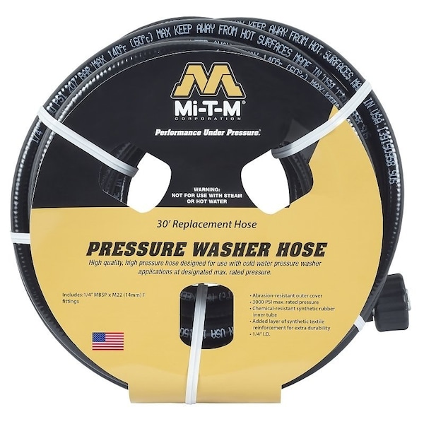 Pressure Washer Hose, 30 ft L, Plug