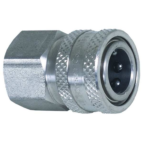 Quick-Connect Coupler, Inlet 3/8 in (F)NPT, Outlet 3/8 in (F) Quick Connect, Material Stainless Steel, Max. Pressure 6,000 psi, Max. Fluid Temp. 195 Degrees F