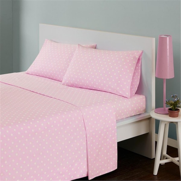 Brighten up your room with the mi zone polka dot sheet set. The bold colors and fun print will liven up any room. Made from 100 precent cotton percale this sheet set will last wash after wash. The fitted sheet will fit up to a 16 in. Mattress. Features - Pattern - Polka dot. -Color - Pink. -Material - 180 thread count cotton percale. -Size - Queen. -Set include - 2 pillowcases 1 fitted sheet 1 flat sheet.