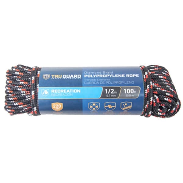 0.5 x 100 ft. Tru-Guard Diamond Braided Polypropylene Rope; Assorted Colors
