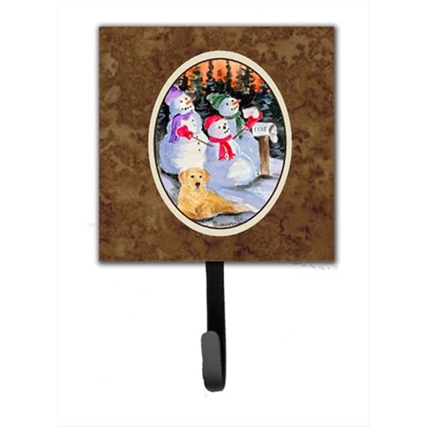 4.25 x 6 in. Snowman with Golden Retriever Leash Or Key Hook