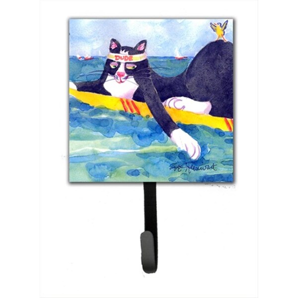 Black And White Cat Surfin Bird Leash Holder Or Key Hook