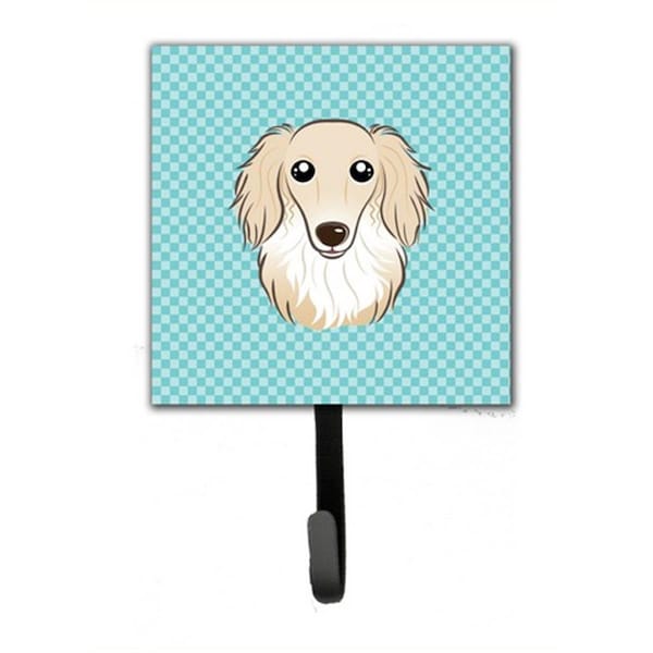 Checkerboard Blue Longhair Creme Dachshund Leash & Key Holder