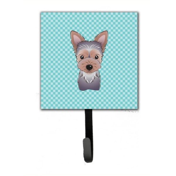Checkerboard Blue Yorkie Puppy Leash & Key Holder