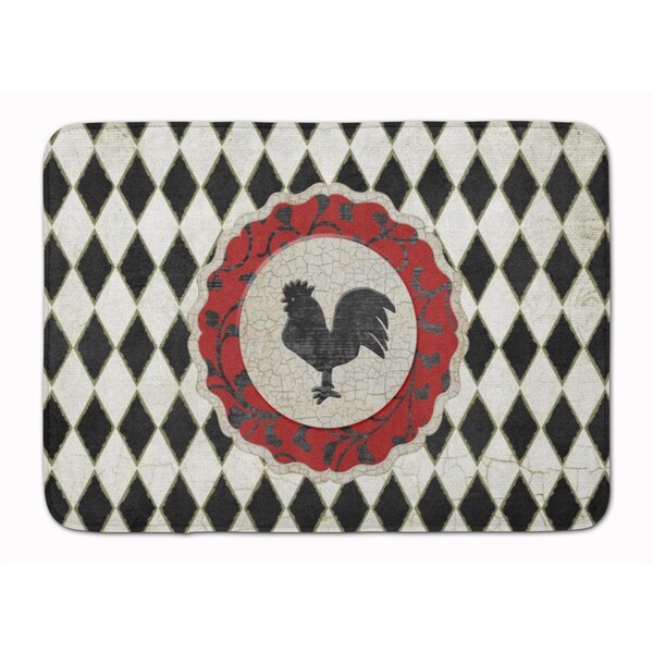 Rooster Harlequin Black & White Machine Washable Memory Foam Mat