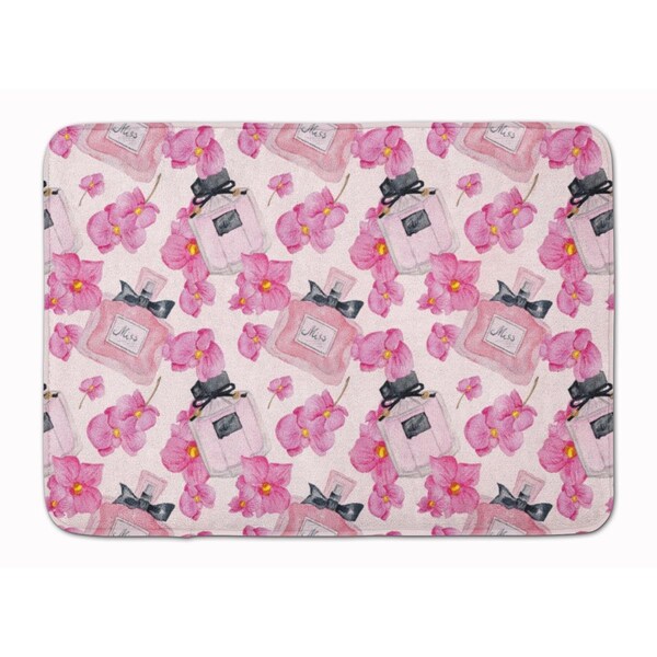 Watercolor Pink Flowers & Perfume Machine Washable Memory Foam Mat