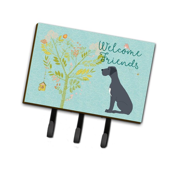 Welcome Friends Black Great Dane Leash or Key Holder6 x 2 x 9 in.