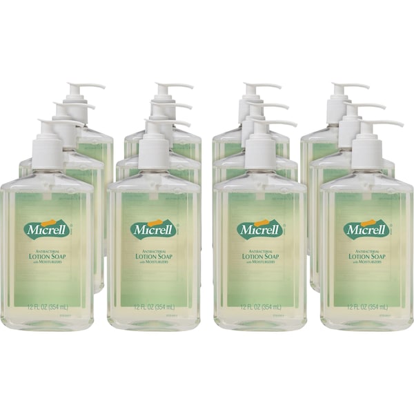Hand Soap, Lotion, Antimicrobial, 12oz Pump Clear, PK 12