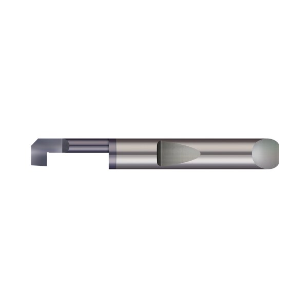 0.300" Min Bore DIA x 0.750" (3/4) Max Bore Depth 0.1380" Tooth Width 0.110" Projection x 0.3125" (5/16) Shank DIA x 2.50" (2-1/2) Overall Length x 0.008" Corner Radius - Carbide Quick Change - Reverse Boring Right Hand, AlTiN Coated