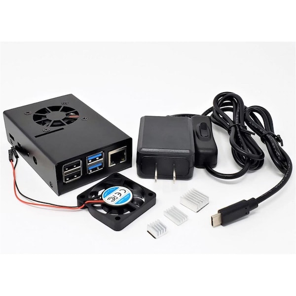 Aluminum Case for Raspberry Pi 4 Model B with Fan & USB-C Power, Balck