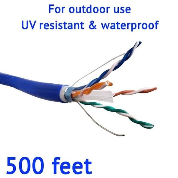 Micro Connectors TR4-560BLOU-500 500 ft. Solid Shielded STP CAT6 Outdoor; UV Resistant and Waterproof Bulk Ethernet Cable - Blue