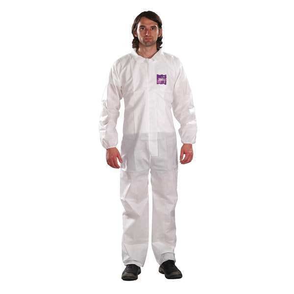 Coveralls, Ankle Closure Elastic, Anti-Static Yes, Attached Hood No, Breathable Back Style Not Applicable, Clean Process Status Not Clean Processed, Closure Features Storm Flap, Closure Type Zipper, Color White, Coverall Style Collared, Cuff Style Elastic, EPA Protection Level Not Rated, Features Proven Protection, Filters 100 Percent of Particles greater than 3 Microns, Gas Tight No, Hazard Type Non-Hazardous Dry Particulates, Height - Maximum 67 in, Height - Minimum 60 in, High-Visibility No