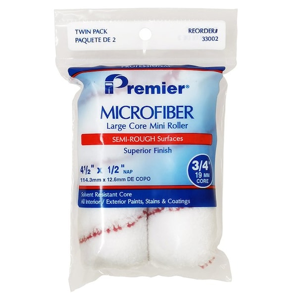 Unique microfiber blend designed for high capacity and smooth consistent paint release. Ideal for paints, stains, urethanes, and cements. Heavy-duty polypropylene core withstands water and solvents. Mini rollers are designed for small spaces and hard to reach areas such as corners and closets. The small diameter makes paint easy to apply. Smoothest, lint free finish and maximum coverage with all paints and enamels.