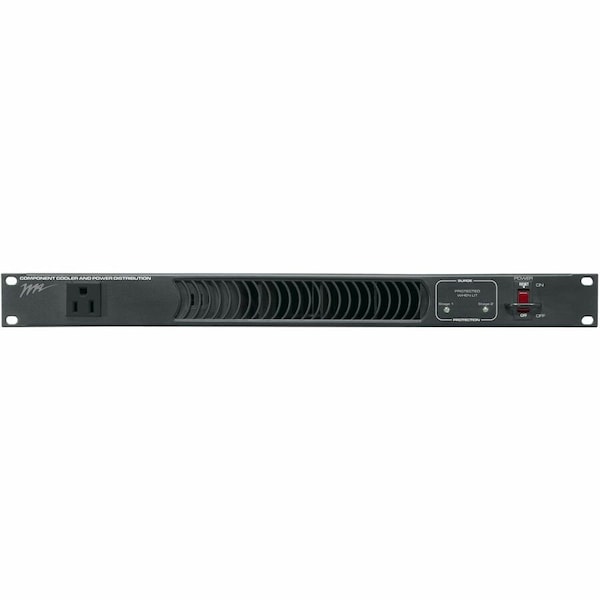 Combines power distribution and cooling in one space package. Combines power distribution and cooling in convenient one space package. Quiet blower exhausts 50 CFM with high static pressure to maintain flow. Thermostatic proportional speed control runs only when needed. Includes surge protection with notification.
