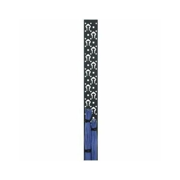 Perforated steel lacer strip mounts vertically to rackrail brackets and provides many locations to secure vertical cabling. 3-1/4 width for high capacity. Includes slip-on posts for fast pre-wrapped cable bundle installation. Also includes cage nut holes and round holes for versatility. Steel construction with black powder coat finish. Sold in packs of 6 pieces. Steel construction. High capacity 3-1/4 width. Equipped with mixed slip-on posts, cage nut holes, and round holes. Accepts mounting of PD Slim and PDT Series power strips. Sold in packs of 6 pieces.