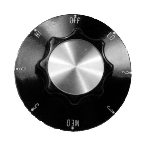 Infinite Switch Knob, Black W/White Print,;[ 2-1/4" Dia ] [ Off-Lo-2-6-Hi] [Mount .187"] [Falt Down],;Toastmaster Griddle