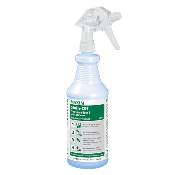 Versatile carpet stain remover for a variety of stains seen in your facility Stain-Off is a professional strength natural buffered stain remover and spotter. Low residue formula will not resoil carpet. Removes iodine and betadine instantly. Works on tough food, beverage, pet, cosmetics, washable ink, and mildew stains. 12 Per Case