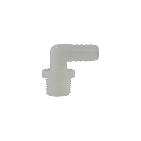 MIDLAND INDUSTRIES 33311W 90 deg Elbow, 1/2 in Hose Barbed x 1/2 in MIP, Nylon