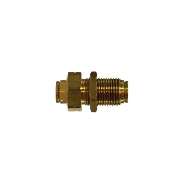 MIDLAND INDUSTRIES 20127 Bulkhead Union, 1/4-in Push-to-Connect x 1/4-in Push-to-Connect, Brass
