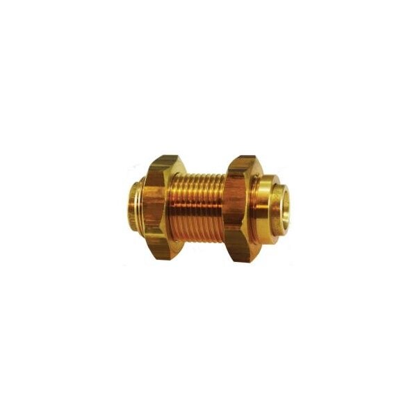 MIDLAND INDUSTRIES 820400 Bulkhead Union, 1/4 in Push-In x 1/4 in Push-In, Brass
