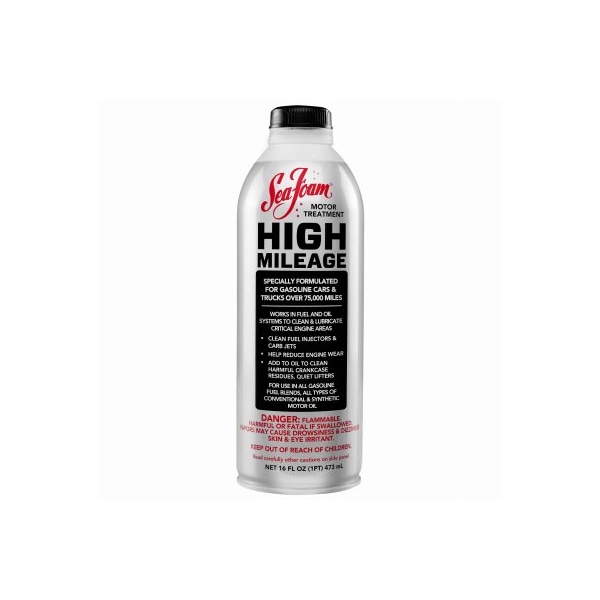 16 oz Seafoam High Mileage Fuel Additive Add to fuel to clean fuel injectors and carburetor jets Add to crankcase oil to help clean and prevent the common causes of oil burning Lubricate critical upper engine areas Reduce longterm engine wear Use regularly to prevent rough engine performance Safe for all gasoline fuels and all types of motor oil Specially formulated for gasoline cars and trucks over 75,000 miles