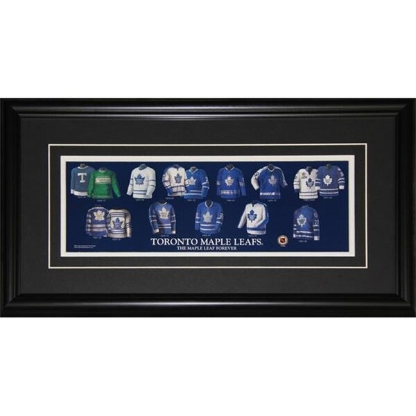 Miniature photo frame featuring the evolution of the jersey of the Toronto Maple Leafs. Comes matted and framed.