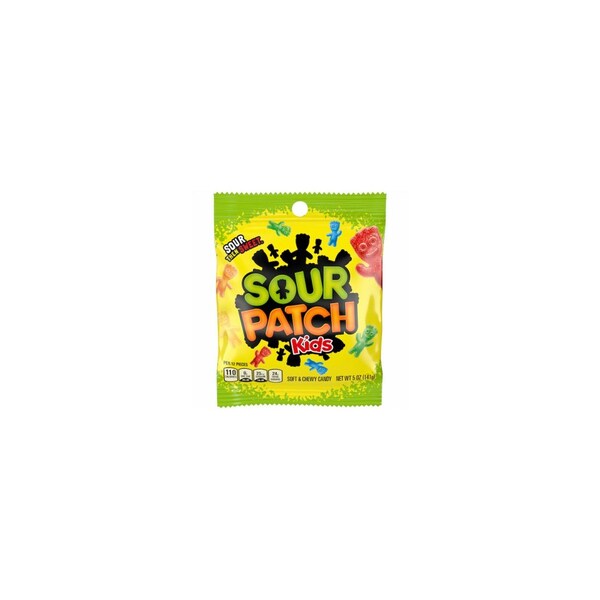 SOFT & CHEWY CANDY KIDS 8OZ Specifications: Ingredients: Sugar Invertsugar Corn Syrup Modified Corn Starch Contains 2 of Tartaric Acid Citric Acid Natural and Artificial Flavor Yellow 6 Red 40 Yellow 5 Blue 1 Nutritional Information: 110 Calories 27 g Total Carbohydrates 24 g Total Sugars 24 g Added Sugars 25 mg Sodium Sour Patch Kids - first they're sour. Then they're sweet. Sour Patch Kids are a fun, soft and chewy candy for children and adults. They are sweet and chewy and packed with Sour Patch pucker power. Keep everyone satisfied when you bring all your favorite Kids to the party.