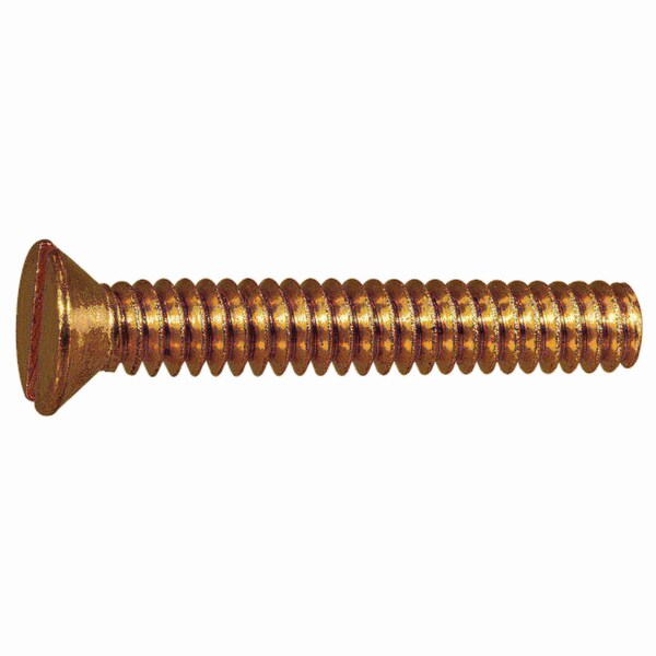 #10-24 x 1-1/4 in Slotted Flat Machine Screw, Plain Brass, 20 PK